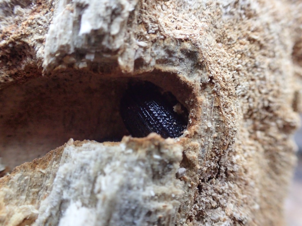 Hide Beetles can also be found by sieving the contents of tree rot holes so keep an eye out for them when looking for stag beetles too. Often you may only find an elytra (wing case).