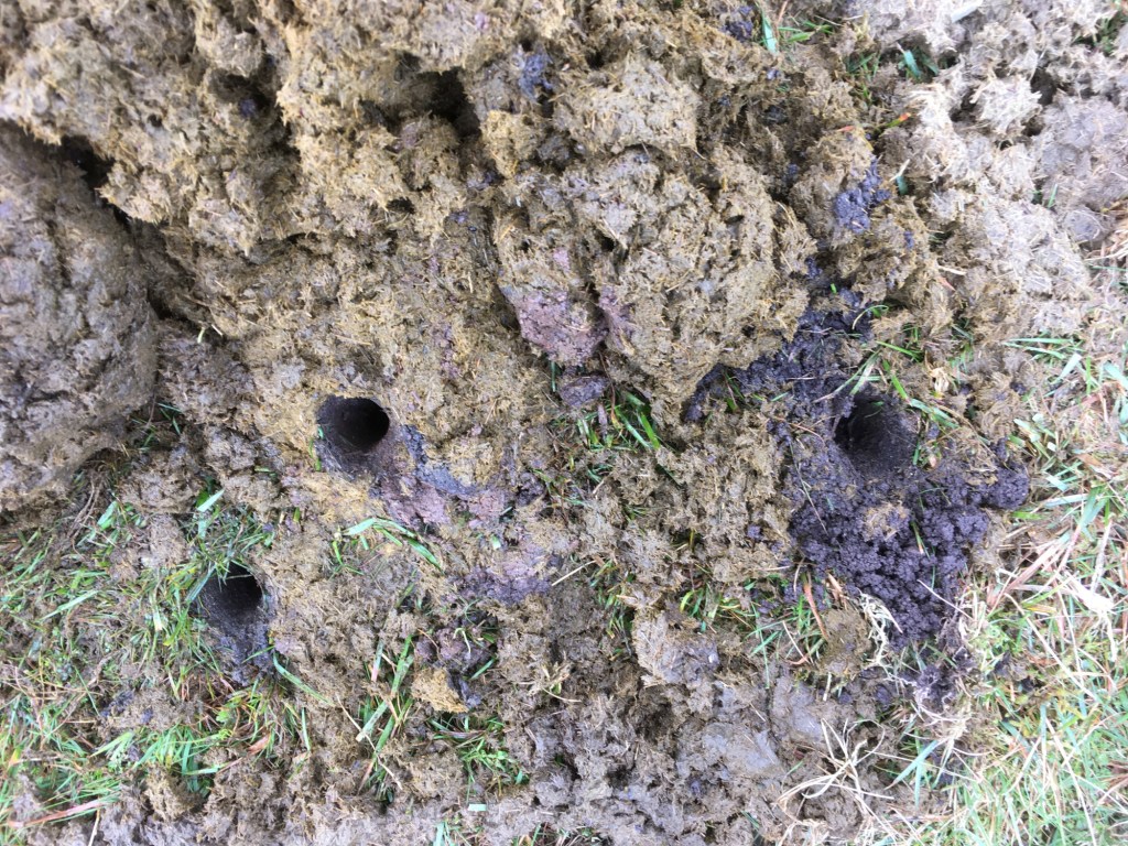 One species, Odonteus armiger feeds on fungi, the others feed on dung. These excavate vertical burrows directly below a dung pile and drag a small portion of dung down into a brood chamber in which the eggs are laid.The excavated soil and tunnel holes, which can measure up to 20mm in diameter, can often be seen underneath or next to dung piles. Sometimes they are referred to as Dor beetles, Lousy Watchmen or Dumbledors.