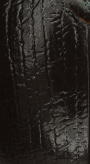 This species has a rounded body shape. The pronotum is has a complete basal bead. Seven striae between the suture and humeral callus. The striae are less well defined than in Geotrupes and the surface between the stria has a heavily crinkled appearance. The abdominal hairs are evenly distributed. The hind tibiae has a single complete ridge whereas Geotrupes have two complete ridges.